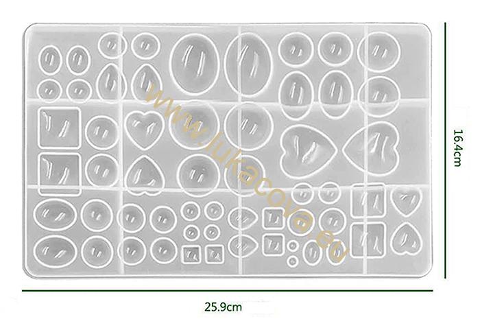 Silikonová forma - PŘÍVĚSKY BEZ DÍRKY. Vhodný materiál pro odlévání: Křišťálová epoxidová pryskyřice RESIN, sádra, mýdlová hmota apod.. Tato forma má dokonale hladký povrch a proto výsledné odlitky z pryskyřice evokují dojem skla. Vnitřní hrana (výsledná lícová) je zaoblená a tím dává výrobkům organický dojem čočky. Výhodou této formy je "Párovost" pro výrobu náušnic v jedné várce. Po dokončení práce a vyjmutí odlitků doporučujeme nechat formu chvíli odmočit ve vlažné vodě s jarem či mýdlem a pak jemně očistit případné zbytky pryskyřice či sádry. Nepoužívejte pro horké odlévání a vyhněte se ostrým předmětům, aby nedošlo k poškození formy.
